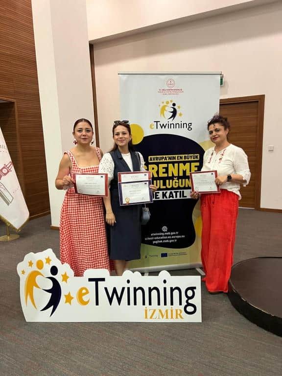 Okulumuz öğretmenleri, İzmir İl Milli Eğitim Müdürlüğü koordinesinde düzenlenen eTwinning Kalite Ödülü Katılım Töreninde başarıyla yer alarak belgelerini aldılar.